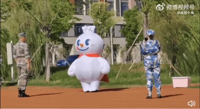 比如军训期间常常人满为患的蜜雪冰城校园店,为了和学生打成一片,雪王主动整活,给他们表演稍息立正、滑滑板。 有时还故意出糗 ,逗学生一笑。