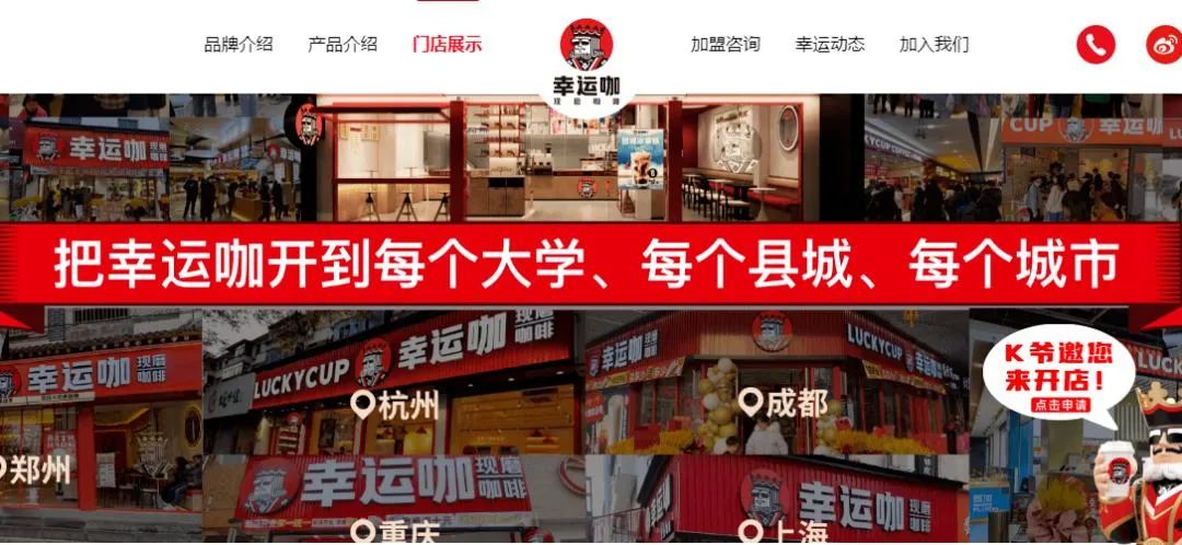 蜜雪冰城子品牌“幸运咖”,激进程度毫不逊色。它曾在官网明晃晃地宣告“把幸运咖开到每个大学、每个县城、每个城市”,把高校市场排在了它所有布局中的首位。数据显示,幸运咖有31%的门店在学校内部或周边。