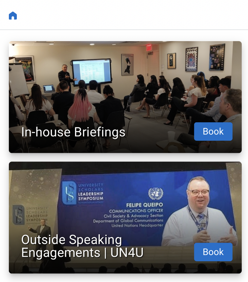 当然,仅仅参观并不能满足网络名人建立精英人物的目的。此外,联合国还提供了更进一步的服务,可以参加内部演讲、外部演讲、线上会议等活动,只需要几百美元。据官方介绍,这类活动适合包括学生、教育家、商界领袖在内的各类人群。