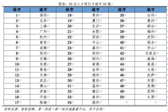 近日,智联招聘、泽平宏观联合推出的《中国城市95后人才吸引力排名:2024》显示,95后人才倾向于前往东部地区,尤其是长三角和珠三角城市群。其中,深圳连续两年位居榜首。(>>详情)
