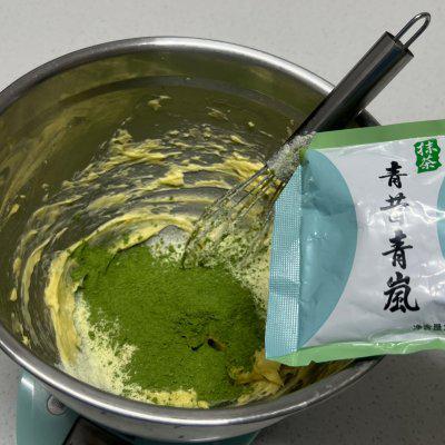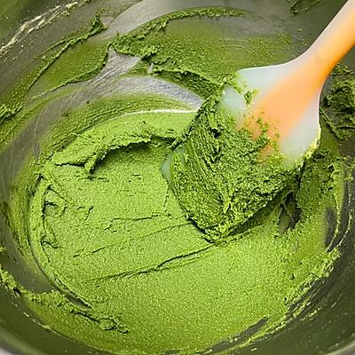 13、牛奶酥馅的做法,将糖粉和黄油打至泛白,加入蛋液和奶粉搅拌均匀,然后加入抹茶粉