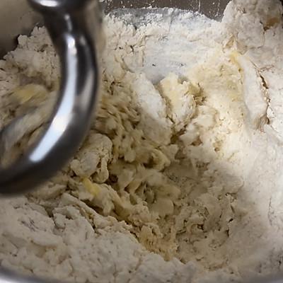 1、将面团材料放入和面机中,打至90%筋