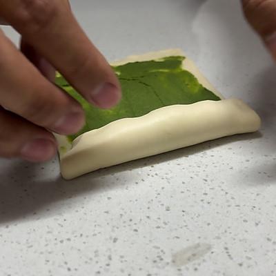 4、首先来做牛奶酥碱水包,面团擀成方形