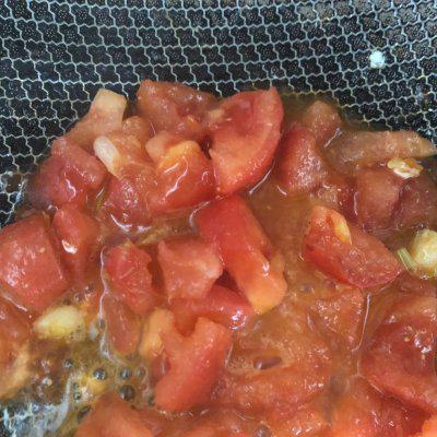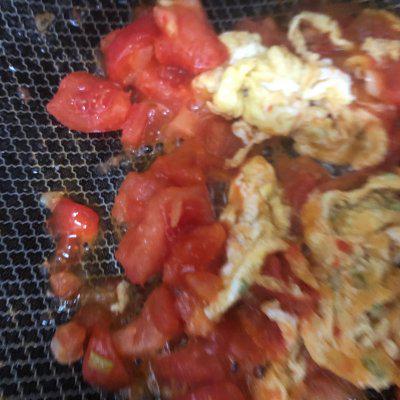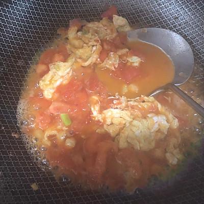 11、在番茄炒鸡蛋中加入一些开水炖煮,呈汤汁拌面菜。