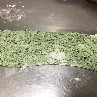 1、菠菜叶焯水 1 分分钟,用压蒜器打碎,做成面团。