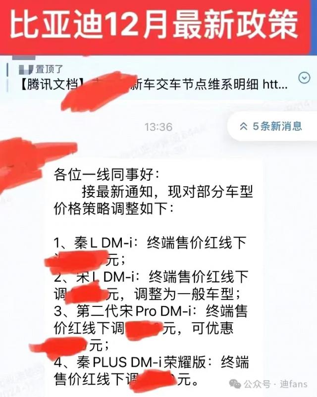 公众号迪 fans 贴出一张写着“比亚迪”的照片。 12 每月最新政策截图显示,比亚迪确实有现金折扣。