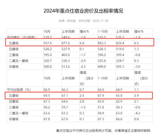 今年 10 月份,五星级酒店 ADR 为 937.6 人民币,同比增长 6.8%。OCC 为 同比增长69.5% 2.5%;前十个月,ADR 为 883.3,同比增长 6.5%。OCC 为 同比增长67.9% 2.9%。