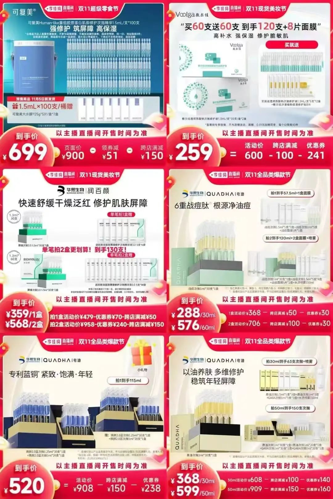 几十个或几百个销售的二次抛售似乎很划算。事实上,单ml的价格并不比罐装精华便宜。根据双十李佳琦直播间的产品价格,润百颜1.3ml*130销售568元,单ml价格为3.36元;同频率1.68元ml*销售599元的100,单ml价格为3.74元;可以复美1.5ml*单ml价格为4.66元,100支售699元。