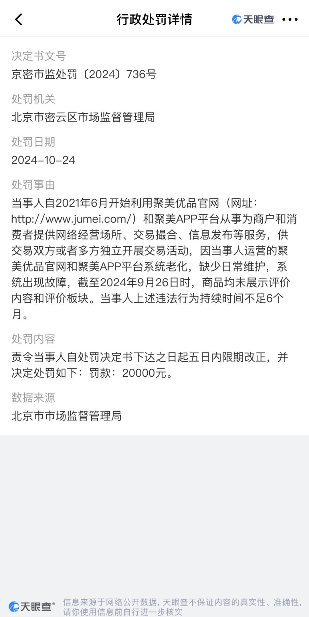 由于系统老化,缺乏日常维护,聚美优品的经营者也被罚款。