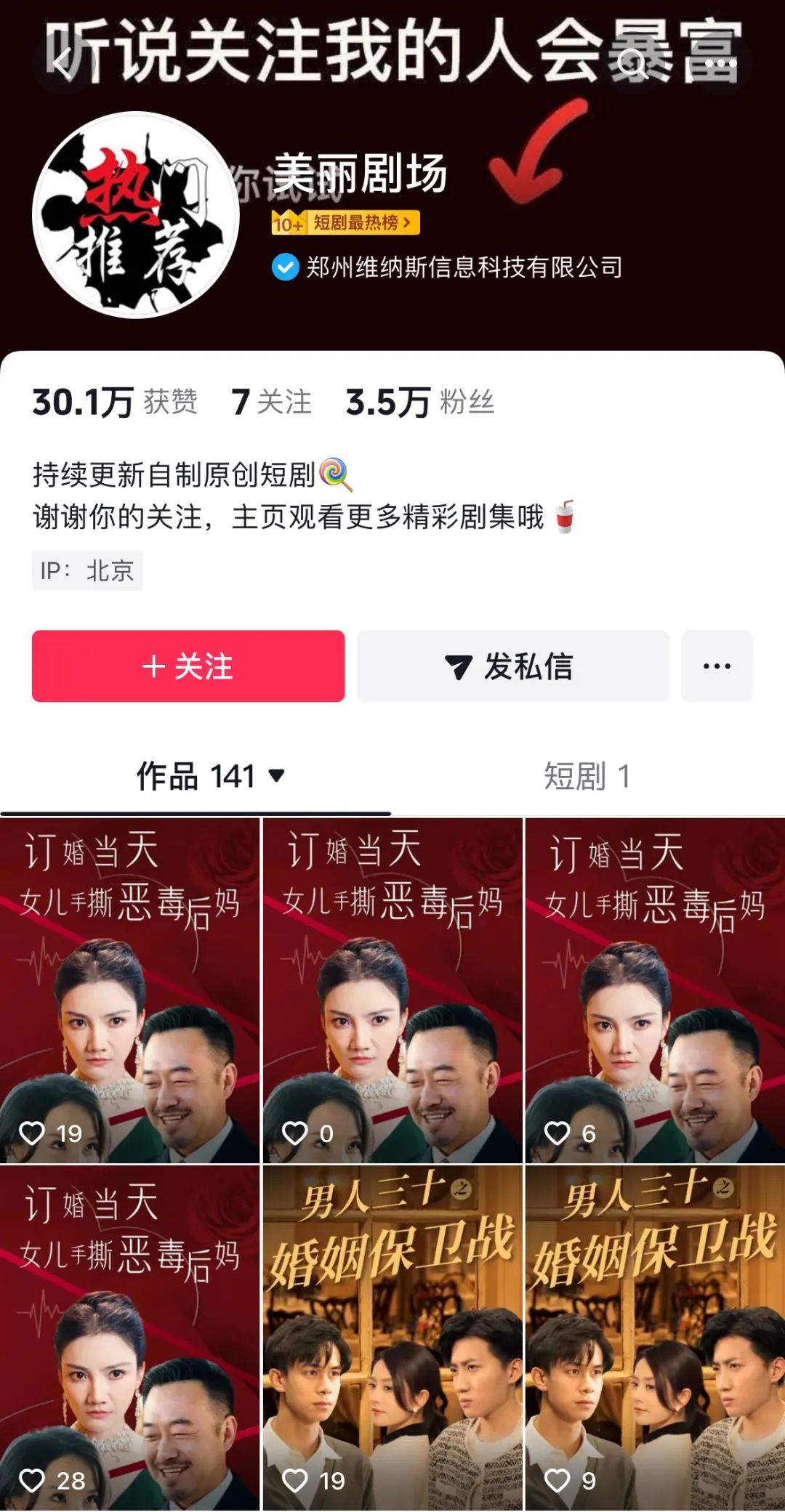 聚美集团开始运营名为“美丽剧场”的短剧账户,但遗憾的是,由于缺乏产品支撑市场的认可,这些短剧的内容反响平平,赞和粉丝屈指可数。
