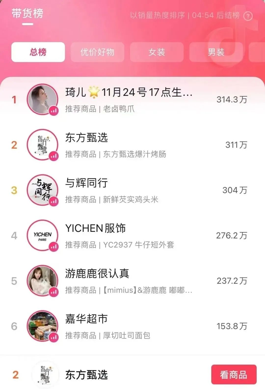 另外,在今年的双11中,东方选择主账户很少掉出抖音榜前十,排在前20位,前一位是其矩阵账户“东方选择美好生活”。