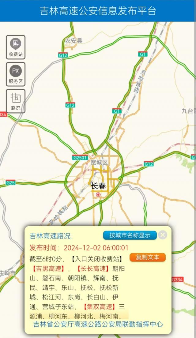 【长高速】朝阳山、磐石南、朝阳镇、辉南、抚民、靖宇、乐山、抚松新城、松江河、东岗、长白山、伊通、营城子东站
