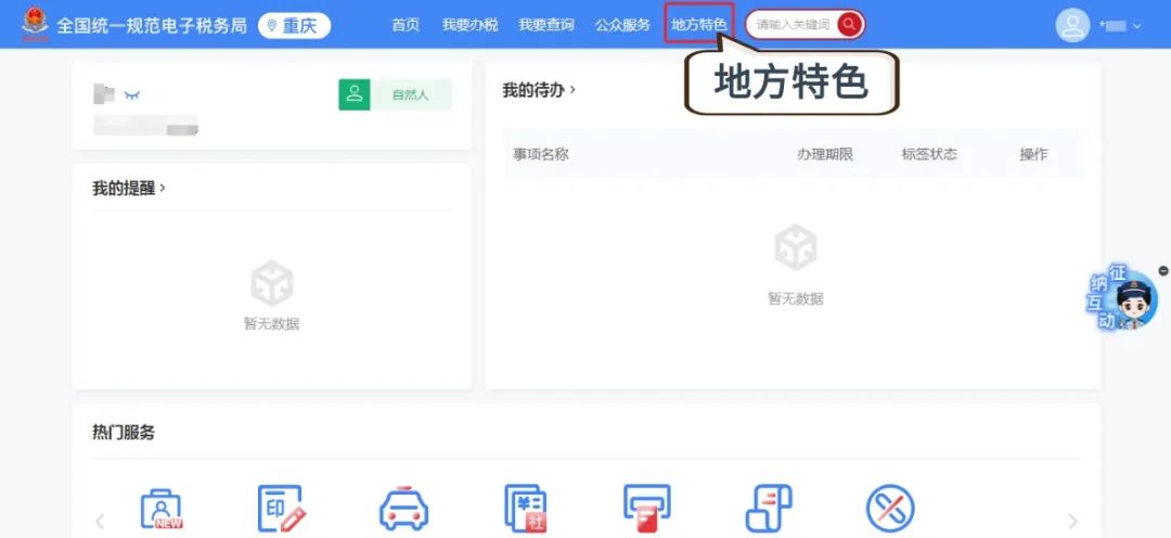 1.进入重庆电子税务局网页,选择【自然人业务】,输入登录名称、密码等信息,然后登录系统,也可以使用电子税务局APP。、扫描左边的二维码登录税务APP。如果您之前没有注册电子税务局账户,可以点击【用户注册】按钮登录。