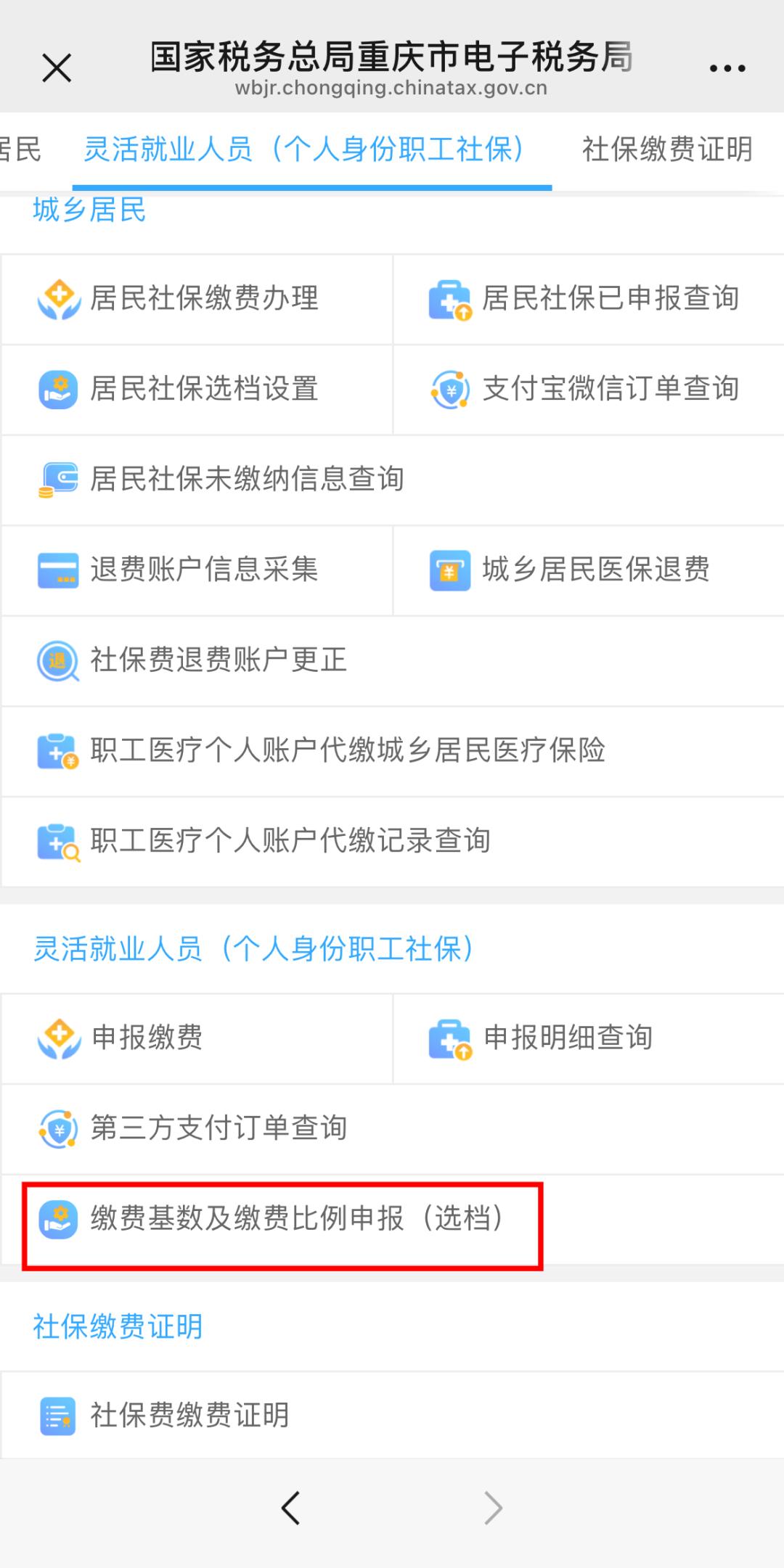点击“缴存基数和缴存比例申请(选档)”进入功能页面。