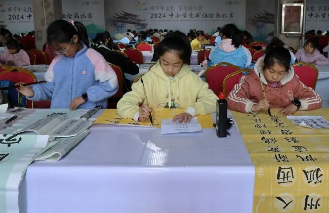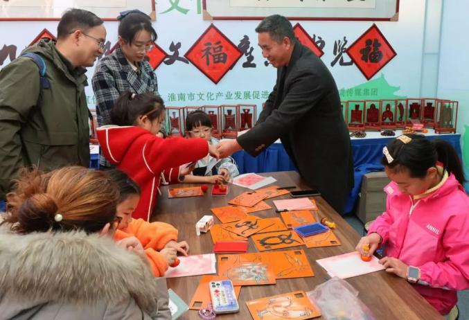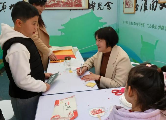 省级工艺美术大师、淮南剪纸代表性传承人周琴与儿童互动。