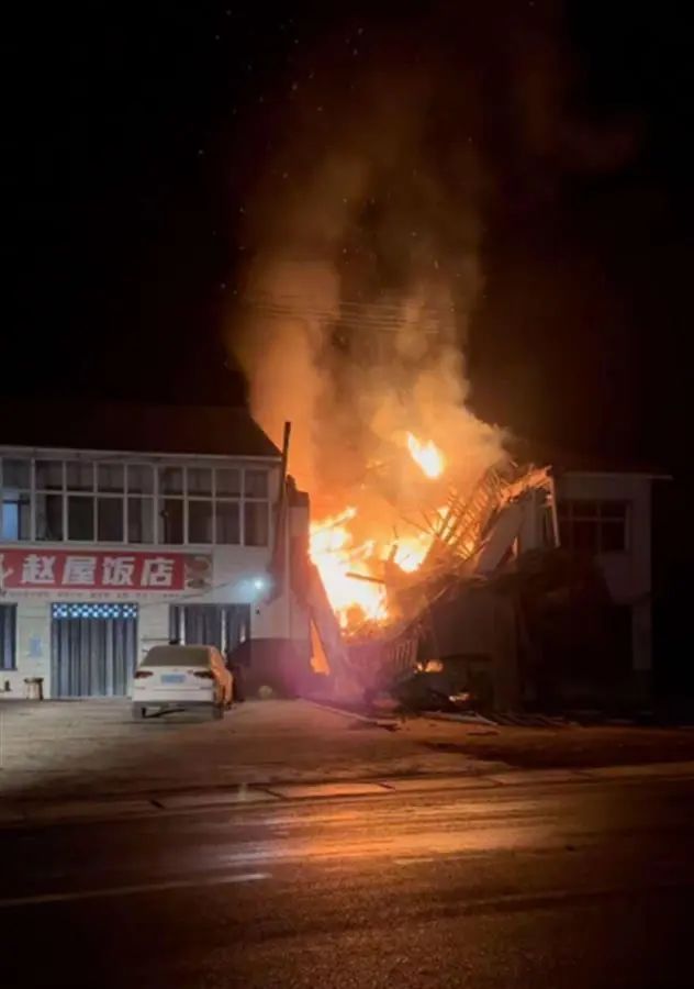 原题:“山西一辆大货车凌晨冲进路边超市,造成房屋起火塌陷”