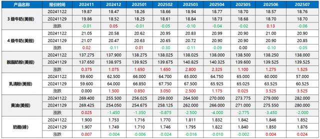 在美国,乳清粉和脱脂奶粉都在上升,尤其是乳清粉。 2 与黄油、奶酪、牛奶相比,月冲高,持续回调。