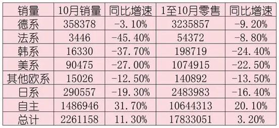相应地,合资品牌在华份额的逐步下滑已经定局。今年继续拿下。 1-10 例如,德国、美国、日本和韩范的数据只剩下他们。 14.9%、6.5%、11.2%、1.6%。在这些人中,日系的“溃缩”尤为明显,而美系、韩范则处于严峻的境地。
