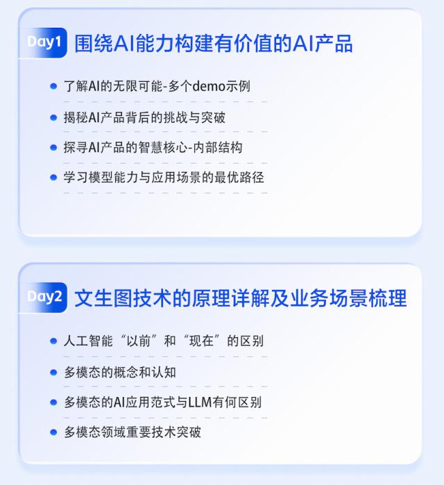 2 天堂课程,从大模型原理到真实商业案例,全链路讲解商品完成所经历的各个环节,帮助你从 0~1 建立 AI 产品能力。