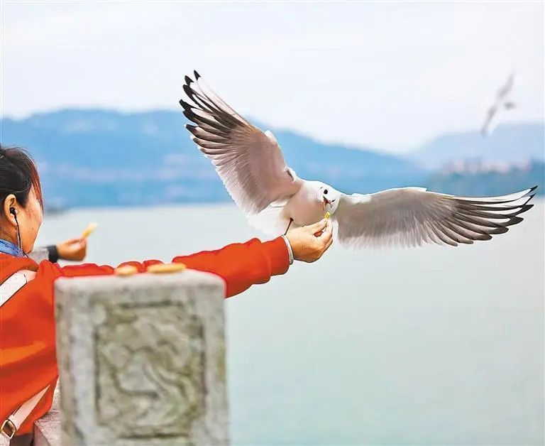原题:《候鸟翔集》!参观者在昭通喂红嘴鸥美图上登上《经济日报》