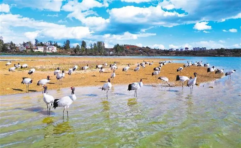 候鸟翔集!在昭通喂红嘴鸥美图上,游客登上《经济日报》