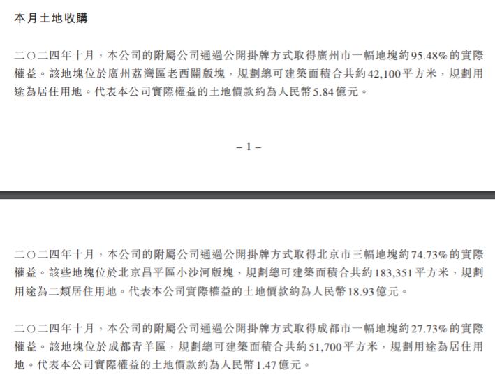 十月份,越秀仍然在广州、北京、成都各自加仓。