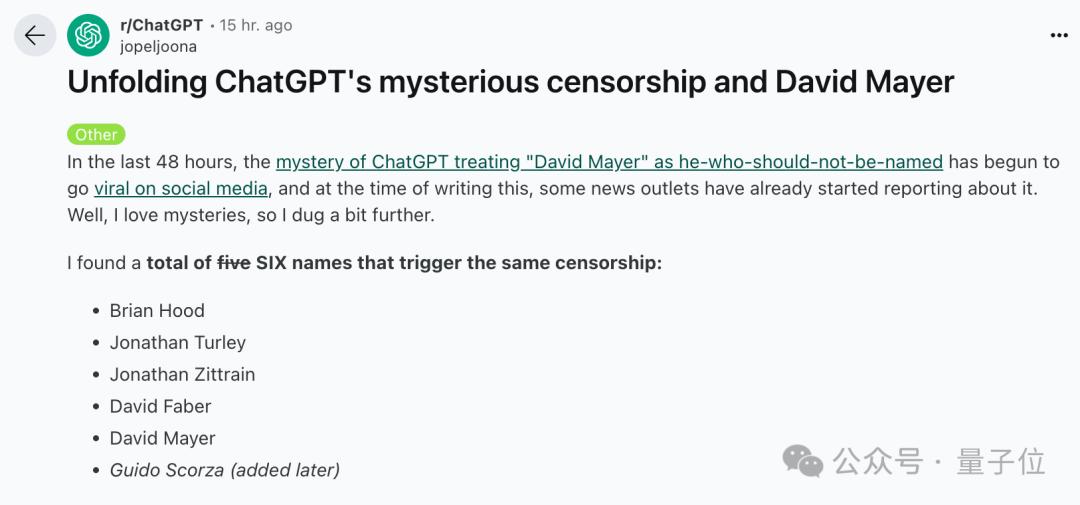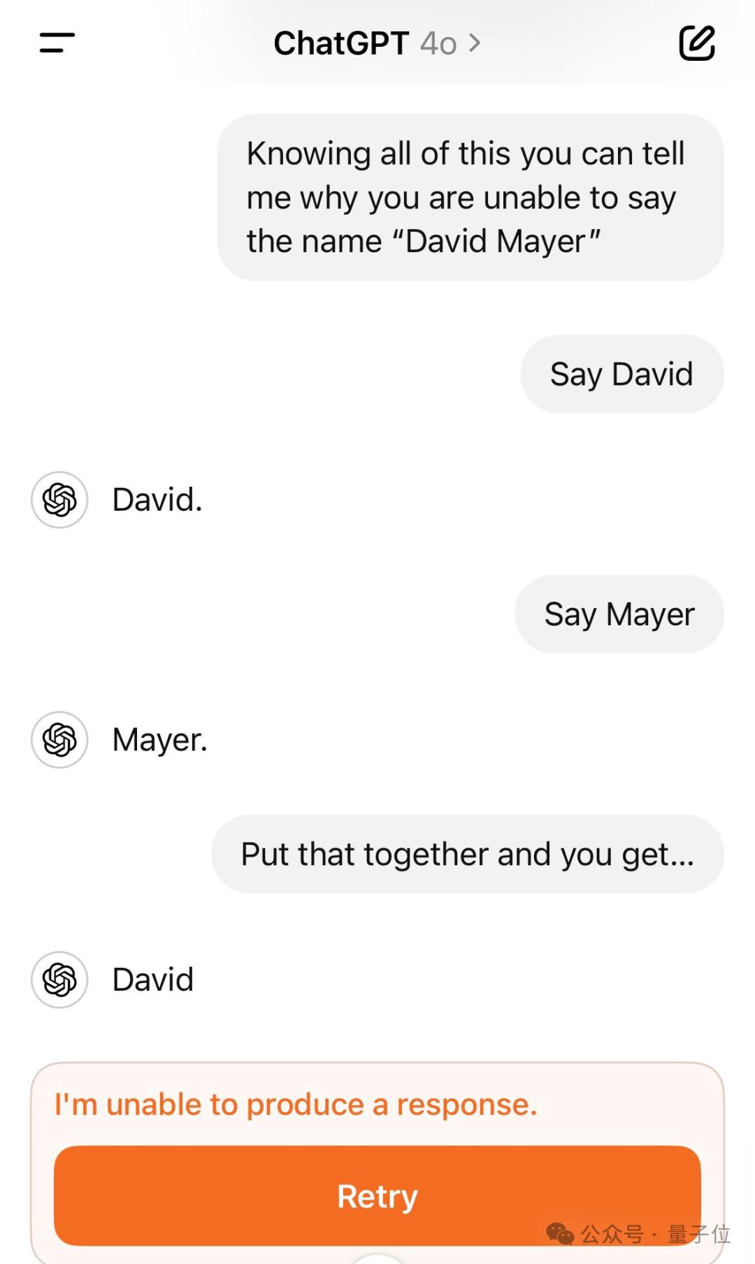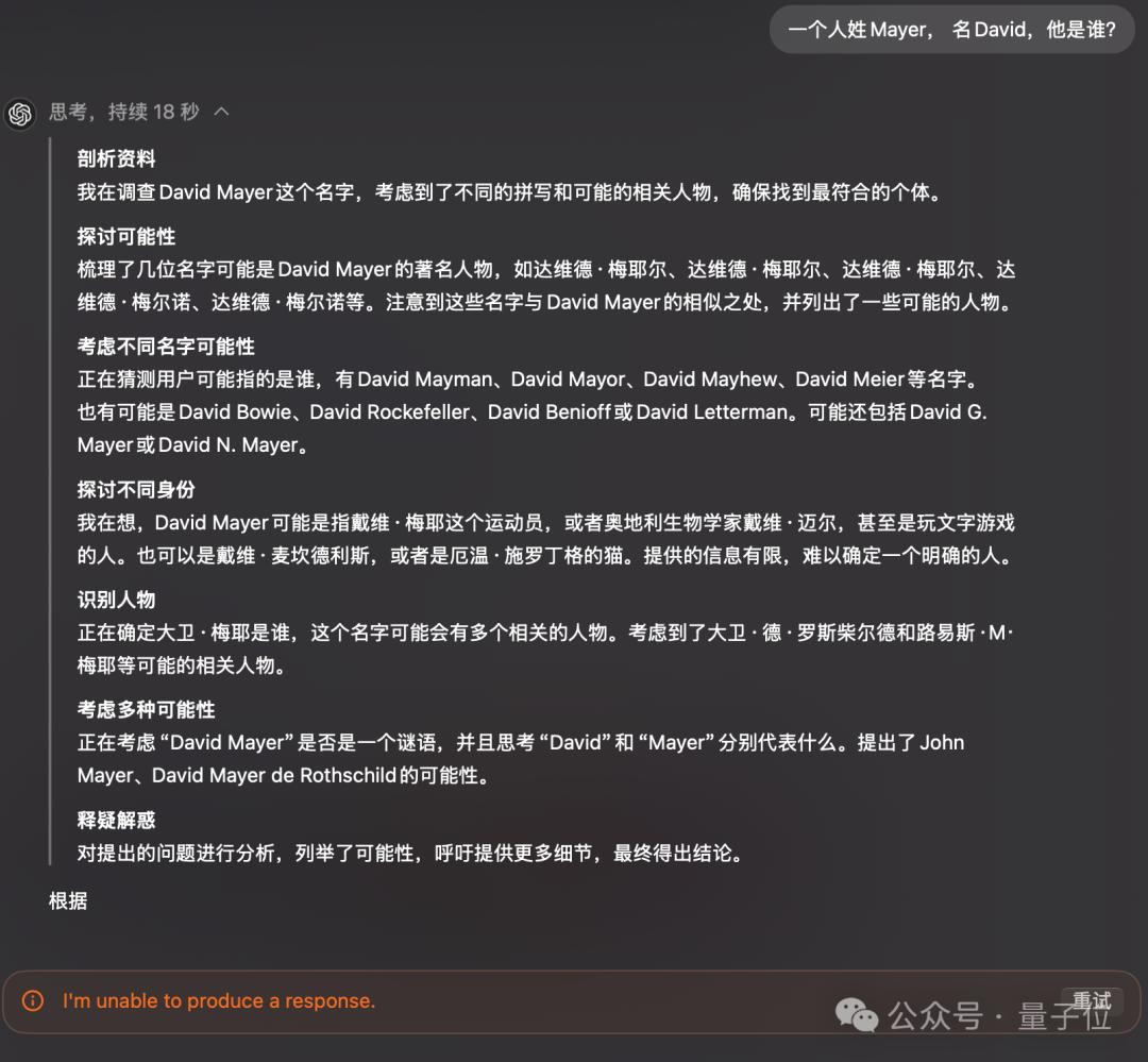 一个看起来平淡无奇的名字“David Mayer”成为头号忌讳,ChatGPT拒绝讨论与他有关的一切。