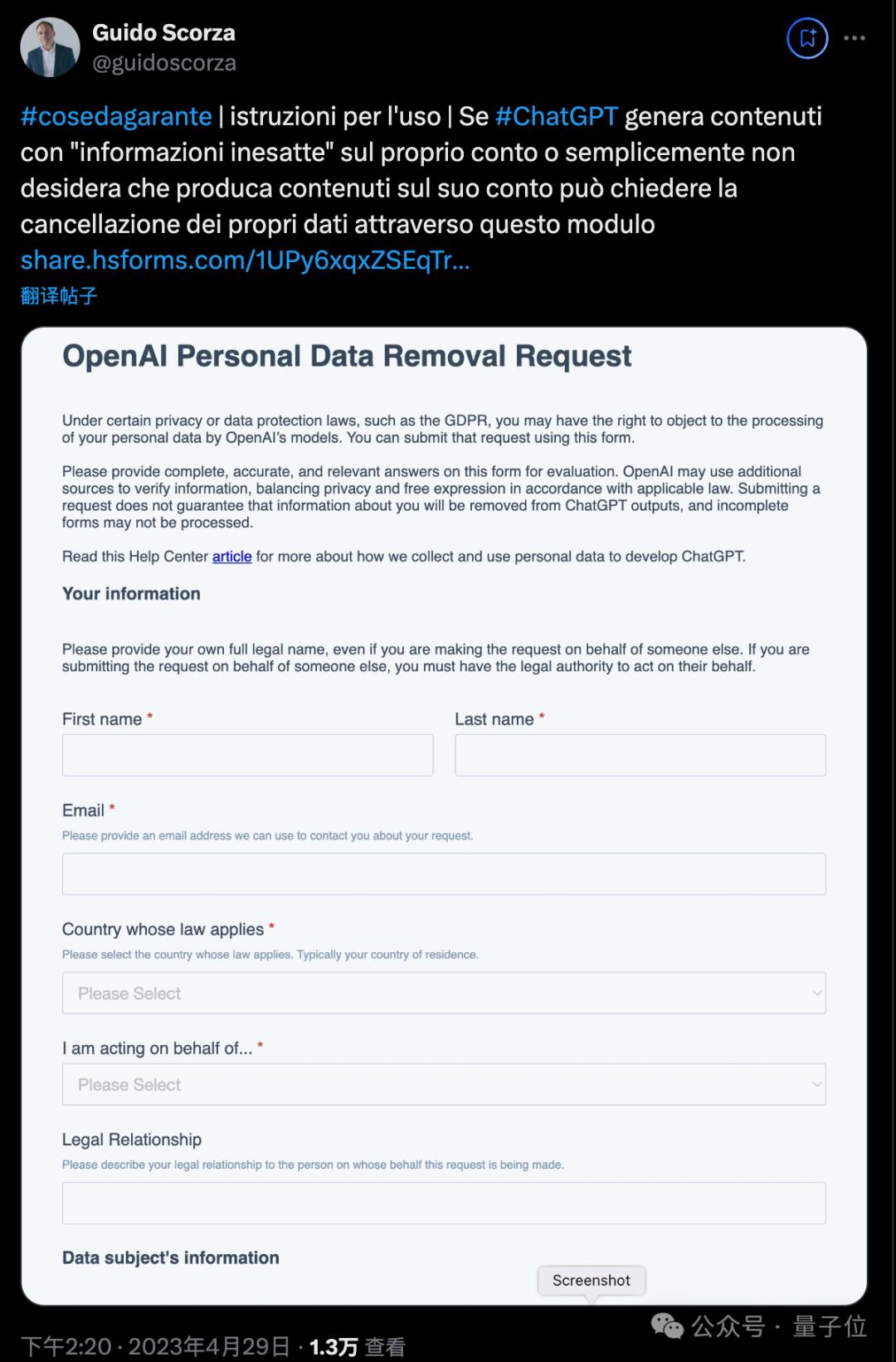 Guido Scorza他是一名意大利律师,去年提交了OpenAI删除个人数据的要求。