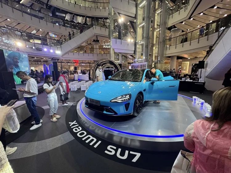我在泰国曼谷 Central World 小米SU7在商场偶遇 在展览中,我遇到了一对带着孩子看车的中国夫妇。对方告诉我,他们对小米品牌非常看好,甚至比国内其他新能源汽车品牌还要好。他定居欧洲,希望小米能尽快在当地销售。