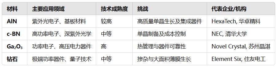 比如,很多 UWBG 材料(如金钢石和立方氮化硼)本身比较稀缺,而且制备高质量的单晶材料需要昂贵的设备和耗材。即便是三氧化二邈等相对成熟的材料。(Ga₂O₃),与传统半导体材料相比,其单晶生长和大规模晶圆生产的成本仍显著提高。这类材料的可用性和成本限制,促使使用 UWBG 在制约技术普及的同时,材料大规模生产电子产品已成为一项艰巨的任务。