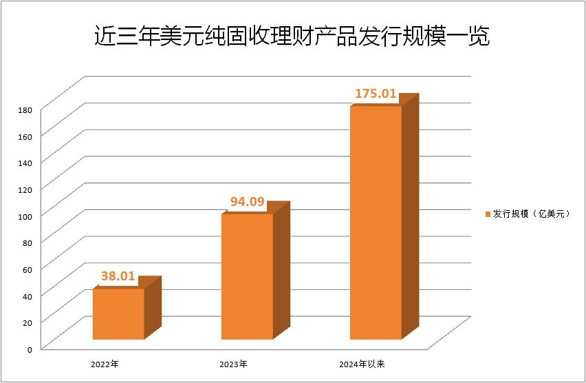 受美元存款利率高影响,美元中长期纯固定收益金融商品主要配备美元存款存单,受到市场青睐。今年,13家金融公司发行了900多家纯固定收益金融公司,募集资金总额达到175亿美元,创下新的资产管理规定实施以来的新高。