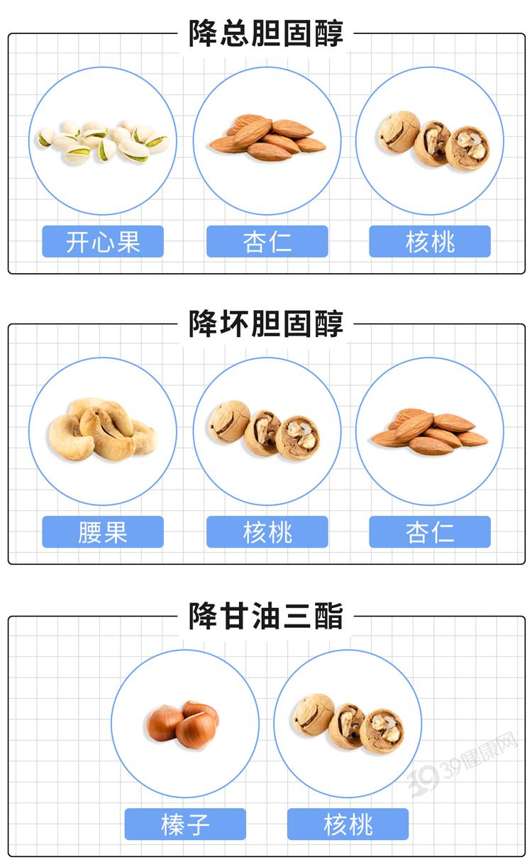 患有高脂血症的人可以根据需要选择不同种类的坚果。↓