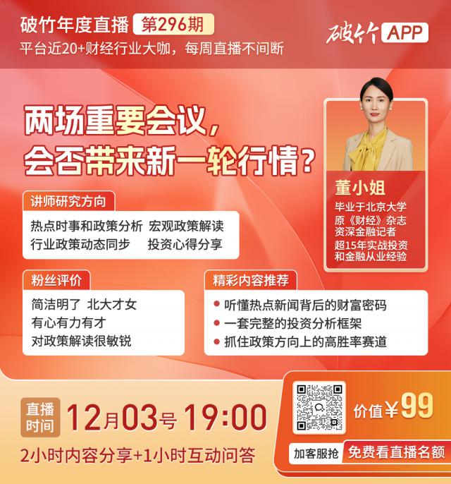 今晚 7 点,在破竹直播间,我们邀请了大家熟悉的金融大咖。董小姐带给大家: