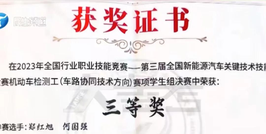 郑红旭和他的同学何国强组队参加了第三届全国核心技术新能源大赛,获得了机动车检测工程(车路协同技术方向)三等奖。