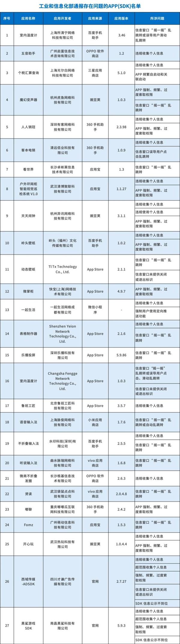 出现问题的 APP(SDK)名单上,上海光尔白网络科技有限公司“税务汇算查询”存在非法收集个人信息的行为,同时, APP 广州启富信息技术咨询有限公司开发的“五音助手”经常自动启动和关联启动,存在非法收集个人信息的行为。