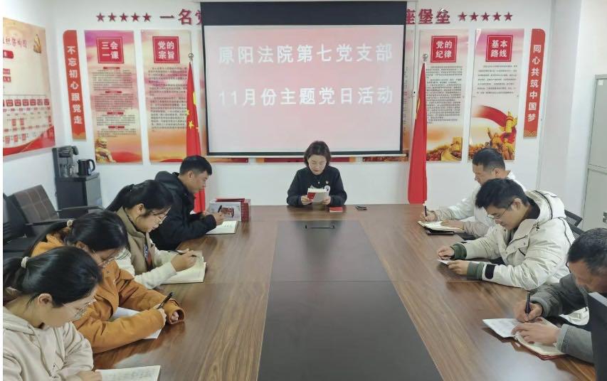 近日,原阳县法院组织各机关党支部开展“学思践悟提能力”,旨在深入学习贯彻党的二十届三中全会精神,进一步提升党员干部创业精神,鼓励广大党员立足岗位勇于承担责任。 以“主题党日活动”为主题,奋力担当。