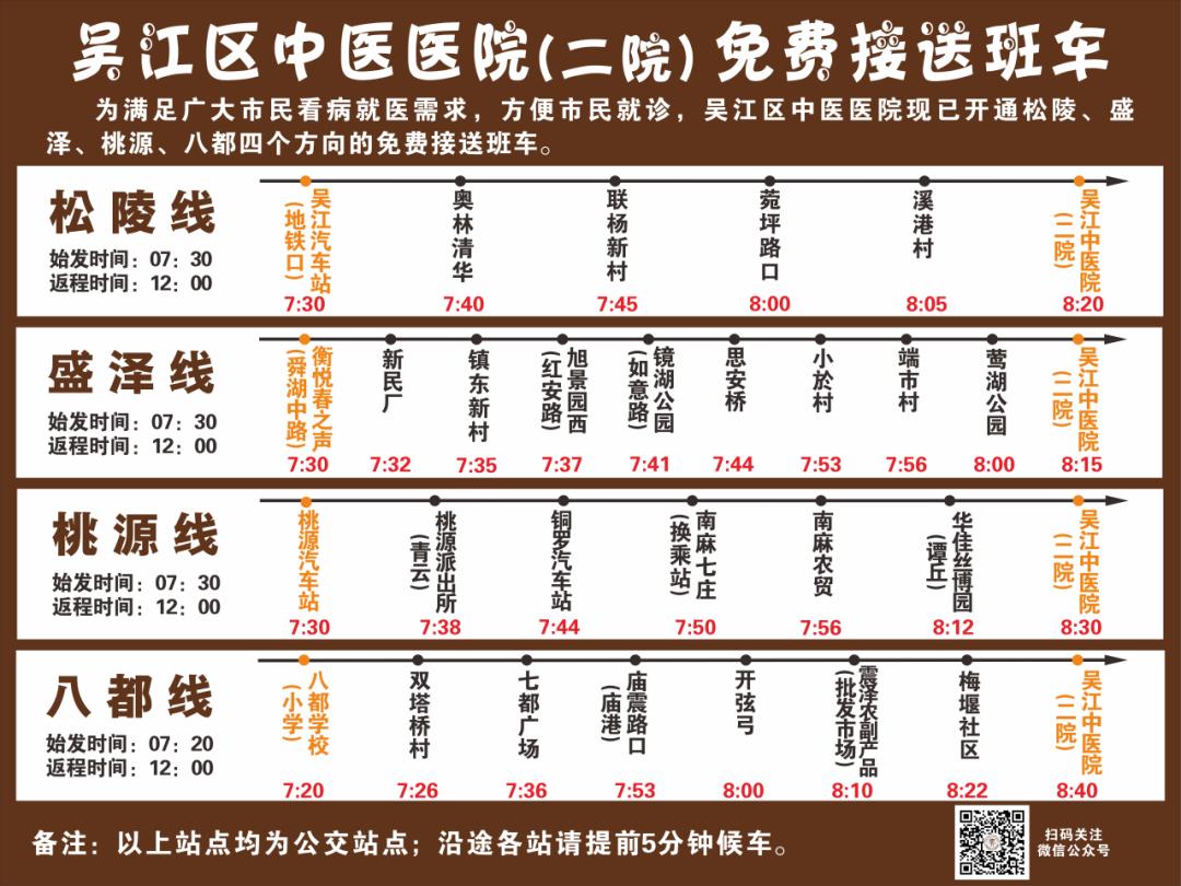 苏州市吴江区中医医院不断完善服务,努力提升病人的医疗体验。医院搬迁后,门诊设立门诊一站式服务中心,整合服务功能,简化工作流程;设立四季保健茶服务点,患者可免费品尝四季保健茶;设置了四条免费班车路线,方便患者就医;为80岁以上没有亲属陪同的老年人提供一站式医疗服务;通过探索和完善医疗流程和信息系统功能,落实预约挂号、“先诊付费”、采取“一号管三天”等措施,尽可能缩短病人的等待时间,进一步提高病人对医疗服务的便利性和满意度。