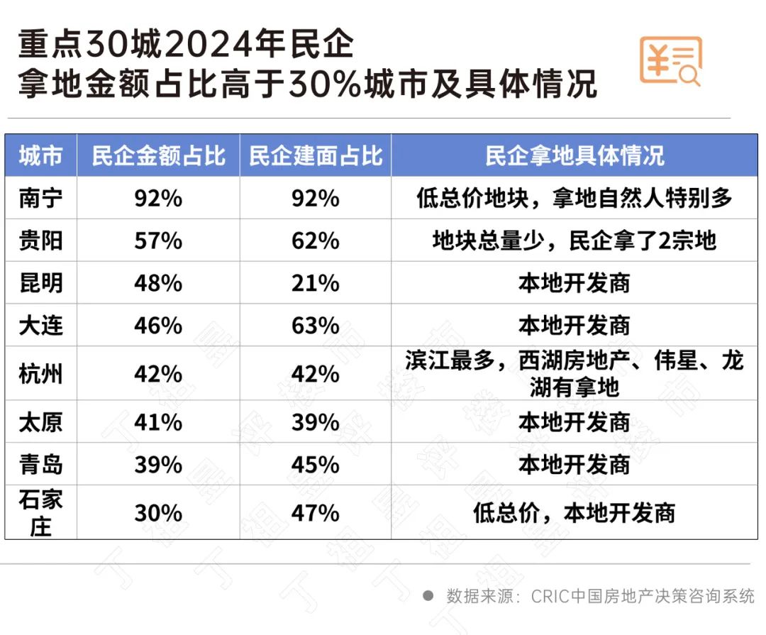 具体而言,重点30个城市中有8个城市有8个城市有30%以上的征地。,其中,南宁民营企业的征地额度占90%以上。