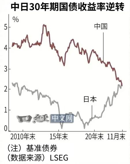 第一次逆转中日30年期国债收益率