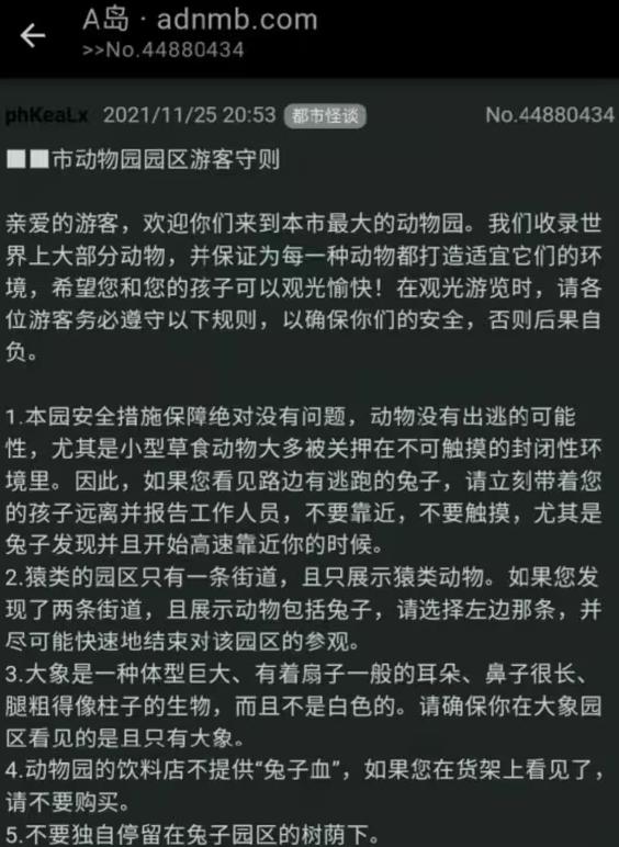 起源于A岛的动物园神秘故事,因其贴近生活的使用场景和难以形容的怪异感,在网络上迅速流行起来,衍生出各种变异。这种将日常规则与怪异元素相结合的创作方式,不仅降低了读者的阅读门槛,还以其独特的魅力吸引了大量的转发和讨论,成为中国网络上的热门话题。