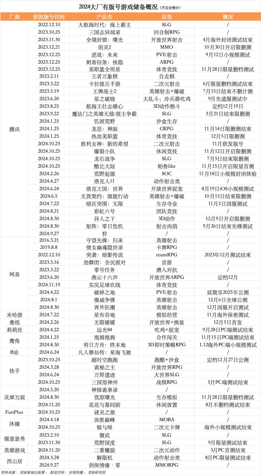 另一方面,在网易游戏中,网易互相娱乐的梦想只有漫威漫画、破碎之地、燕云十六声等新产品,雷火储备的产品只有《无限大》、《界外狂潮》等。这与竞争统计的游戏厂商获得的版本号产品储备不谋而合。