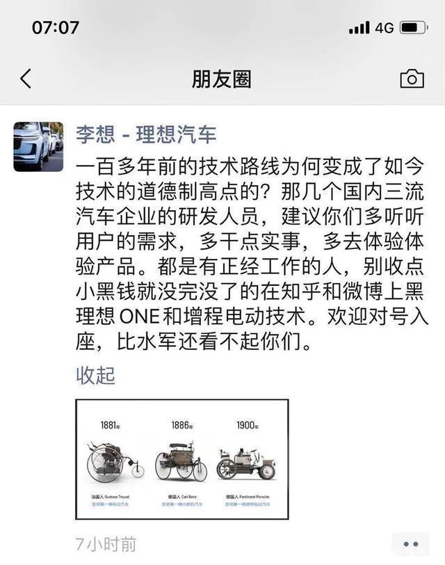 2020年,一张李想朋友圈的截图流出,将矛头指向了只知道“燃油车技术落后的黑子”。