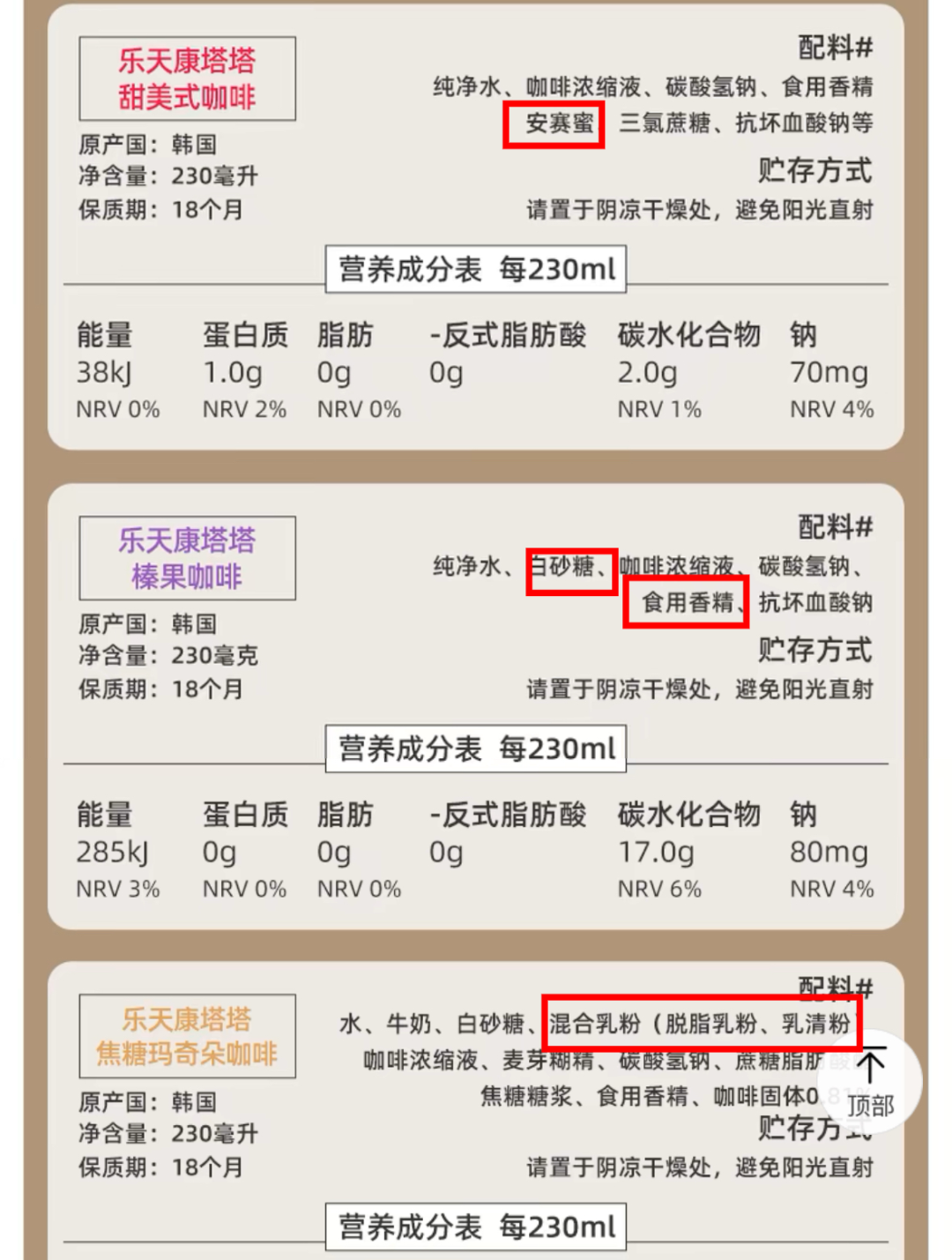 目前,Canta(康塔塔咖啡)是乐天旗下的高端子品牌,韩国包装咖啡的名字叫Canta,有五种口味,四种是添加各种香精的美式风格,只有一种是焦糖玛奇朵。一袋韩国便利店的价格在11元左右。