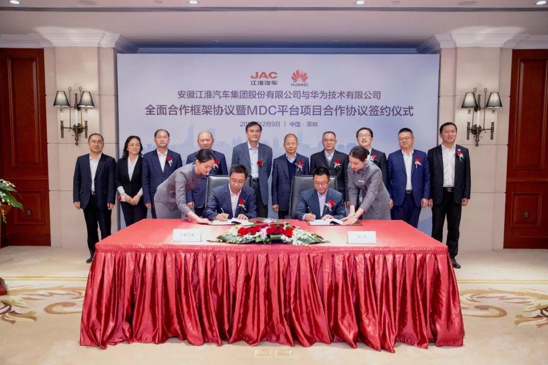 2023年9月,江准与华为终端有限公司签署新协议,双方同意在产品研发、制造、销售、服务等多个领域全面合作,努力打造豪华智能联网电动车。