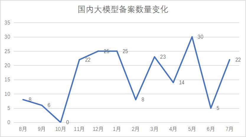 从备案数量来看,从去年年底开始,国内大型备案数量迅速增加到每月20多个,今年5月备案数量达到30个,创历史新高。即使在7月份,也有22家大型备案公司。