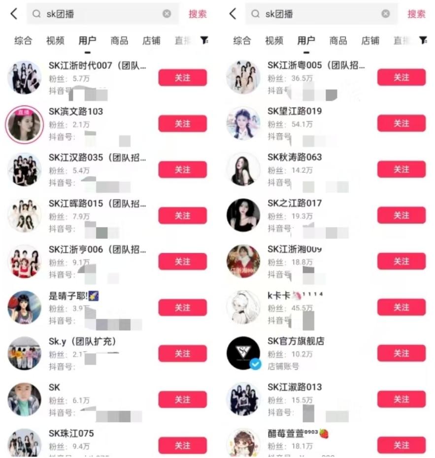 这样的公会会同时经营几十到几百个直播间。以“帅库网”为例,其团播直播间以前缀SK某路加数字命名,而这样的直播间在全颤音有几十个,基本上已经跑过了系统流畅的飞轮。