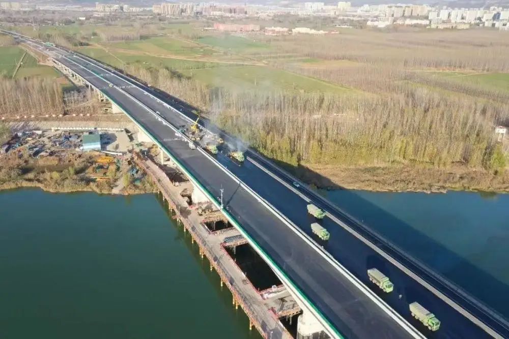 近日,随着一车沥青混凝土最终被推到位,大清河特大桥桥面沥青摊铺全部完成。截至目前,济菏高速改扩建工程主线已全部完成沥青路面施工,全线通车将在年底前完成。