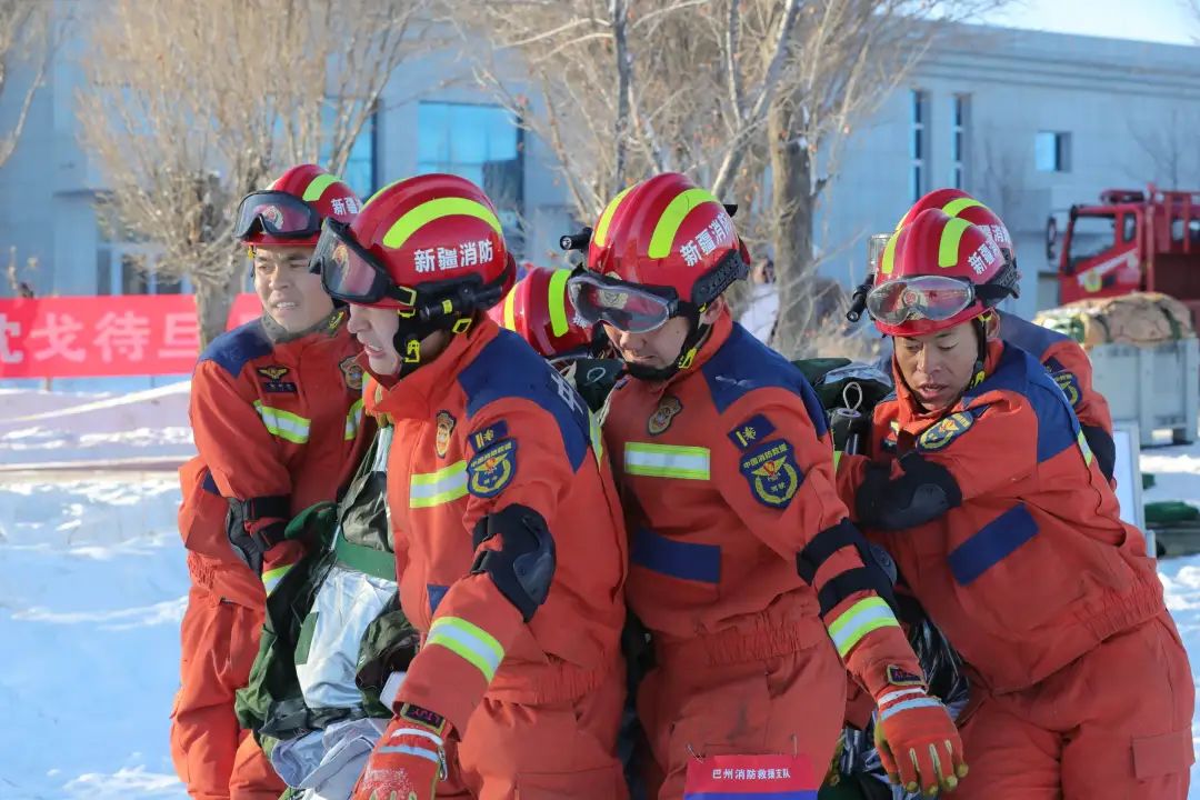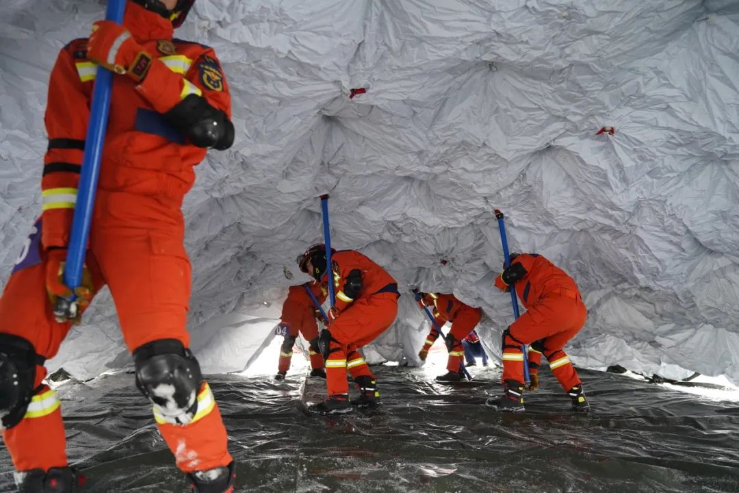 对于每一支参赛队伍来说,这都是前所未有的巨大挑战,喀什消防队队员面临着极端天气的挑战。面对突如其来的风雪,队员们一点也没有退缩。她们咬紧牙关,顶风冒雪,致力于激烈的比赛。在基地建设项目中,队员们凭借精湛的技艺和默契的配合,迅速建立了坚固的基地,为后续的救援工作提供了有力的保障。