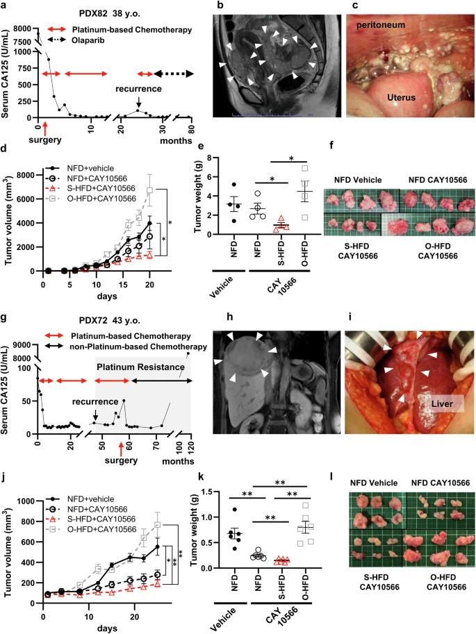 异种移植卵巢癌病人(PDX)在模型中,补充硬脂酸盐和抑制不饱和都有显著的抗增殖作用。