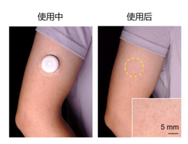 通过对比实验,研究小组发现,装载阿糖胞苷、艾塞那肽(治疗糖尿病药物)的滴注可以持续24小时释放动物体内。滴注贴在抑制肿瘤、降低血糖方面比皮内注射更有效。其中,动物模型体内阿糖胞苷滴注剂量可稳定释放225毫克,足以满足成人在临床治疗中每天150-300毫克的剂量需求,其有效持续时间是皮肤注射的3倍。